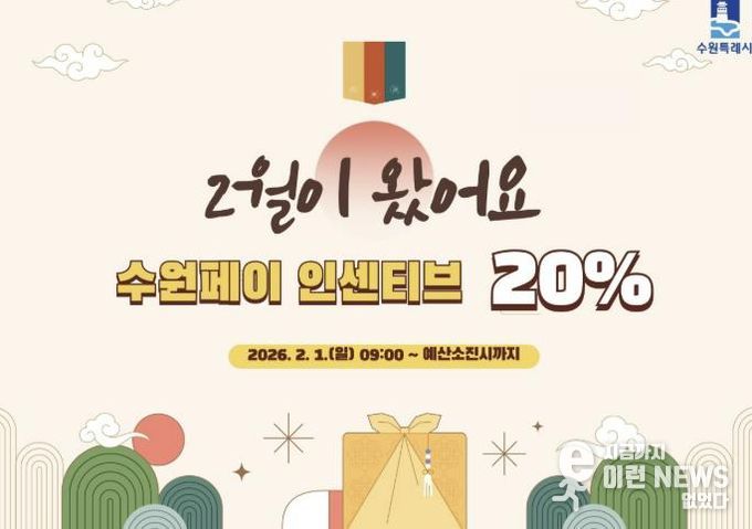 이런뉴스(e-runnews) 김삼성 기자 | 수원특례시가 설 명절을 맞아 2월 수원페이 인센티브를 20%로 확대한다.