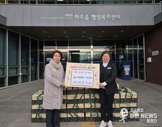 이런뉴스(e-runnews) 김삼성 기자 | 파주시 파주읍은 지난 26일 영진건설㈜이 파주읍 행정복지센터를 방문해 지역 내 어려운 이웃들에게 따뜻한 사랑을 나누고자 떡 선물 꾸러미 40상자(200만 원 상당)를 기탁했다고 전했다.
