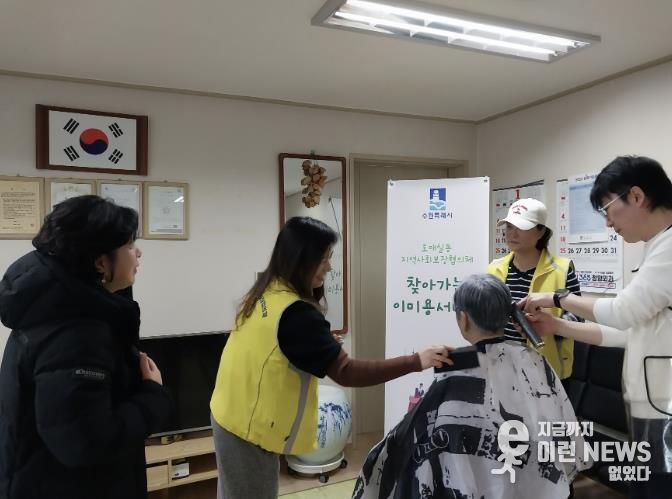 이런뉴스(e-runnews) 김삼성 기자 | 27일 호매실동 지역사회보장협의체는 헤어스타일N과 함께 찾아가는 이미용 서비스를 진행했다.