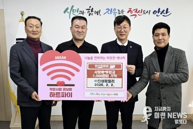 이에 이민근 안산시장은 “모두가 힘든 시기에 따뜻한 나눔을 실천해 주신 ㈜진성패밀리 대표님께 진심으로 감사드린다”며 “기탁해 주신 소중한 후원금이 도움의 손길이 필요한 이웃들에게 잘 전달되어 큰 힘이 될 수 있도록 꼼꼼히 챙기겠다”고 화답했다.