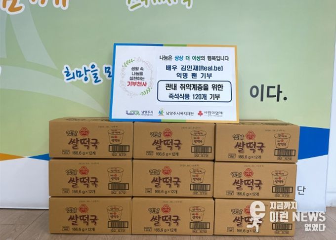 이런뉴스(e-runnews) 김삼성 기자 | 남양주시는 지난달 30일, 배우 김민재(Real.be)의 팬 A씨가 설 명절을 맞아 지역 내 도움이 필요한 이웃을 위해 즉석식품 120개를 기부했다고 3일 밝혔다.