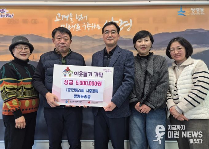 이런뉴스(e-runnews) 김삼성 기자 | 안동김씨 시중공파 쌍령동 종중은 3일 광주시 쌍령동 행정복지센터를 방문해 지역 내 어려운 이웃을 돕기 위한 성금 500만 원을 기탁했다.