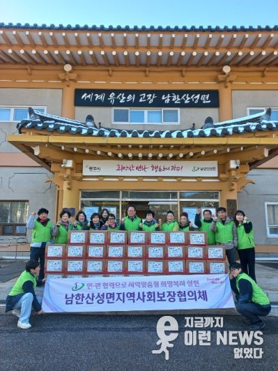 윤석노·손명림 남한산성면 지역사회보장협의체 공동위원장은 “주변의 어려운 이웃들이 외롭지 않은 설 명절을 보내시길 바라는 마음으로 이번 사업을 준비했다”며 “앞으로도 지역사회에 온기를 전하는 나눔 활동을 이어가겠다”고 밝혔다.