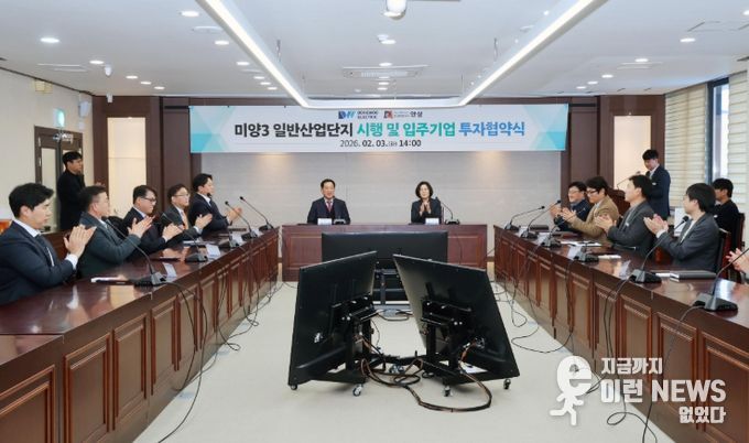 이런뉴스(e-runnews) 김삼성 기자 | 안성시는 2026년 2월 3일 시청 본관 2층 상황실에서 동우일렉트릭 주식회사와 ‘미양3 일반산업단지 시행 및 입주기업 투자유치 양해각서(MOU)’를 체결했다. 이번 협약을 통해 동우일렉트릭(주)는 미양3 일반산업단지에 총 1,303억 원을 투자하고 500명의 신규 고용을 창출하기로 했다.