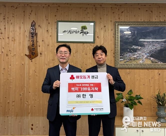윤성보 ㈜한영 대표는 “설날을 맞아 지역 이웃을 돕기 위해 올해도 기부에 동참하게 됐다”라며 “앞으로도 지역의 취약계층에 도움이 되는 다양한 사회 공헌 활동을 이어가겠다”라고 말했다.