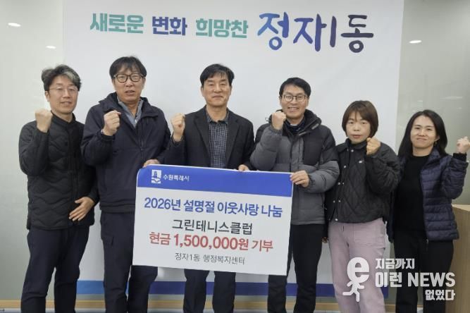 이런뉴스(e-runnews) 김삼성 기자 | 수원시 장안구 정자1동은 지난 3일, 그린테니스클럽이 설 명절을 맞아 관내 취약계층을 돕기 위한 기부금 150만원을 전달했다고 밝혔다.