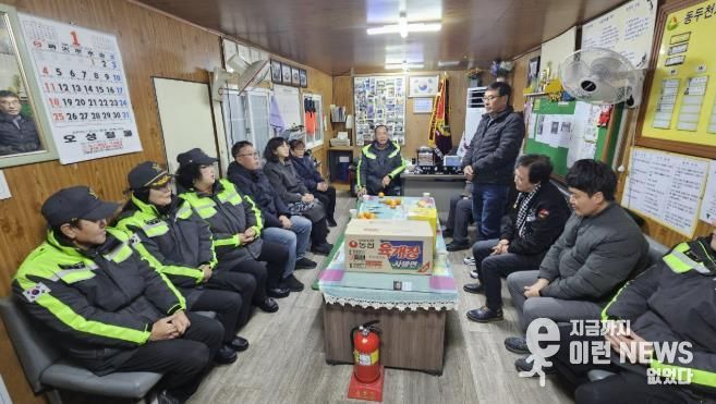 이런뉴스(e-runnews) 김삼성 기자 | 동두천시 상패동 행정복지센터는 지난 3일 상패동 사회단체협의회와 함께 설 명절을 맞아 지역 안전을 위해 활동 중인 상패동 자율방범대 감악산지대를 방문해 대원들을 격려하고 위문품을 전달했다.