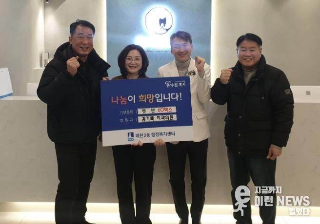 김기록치과는 주변의 어려운 이웃을 돕기 위한 나눔에 동참하며 지역사회 복지 증진에 힘을 보탰다. 기탁된 햇반은 관내 기초생활수급자와 홑몸 어르신 등 식사 지원이 필요한 취약계층뿐만 아니라 복지 사각지대 가구에 전달될 예정이다.