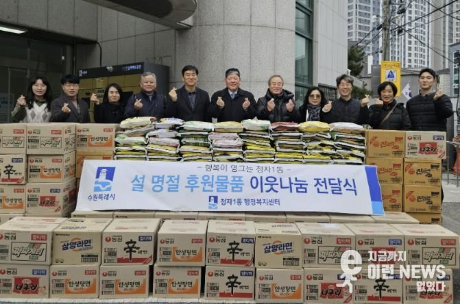이런뉴스(e-runnews) 김삼성 기자 | 정자1동 행정복지센터는 2월 4일 설 명절을 앞두고 관내 단체, 기업, 개인 등에서 기탁한 성금과 물품을 어려운 이웃들에게 전달하는 ‘설 명절 이웃사랑 나눔 전달식’을 개최했다.