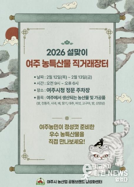 이런뉴스(e-runnews) 김삼성 기자 | 여주시는 설 명절을 맞아 지역 농업인의 판로를 확대하고 시민들의 장바구니 부담을 줄이기 위해 오는 2월 12일부터 13일까지 이틀간 ‘2026 설맞이 여주 농특산물 직거래장터’를 개최한다.