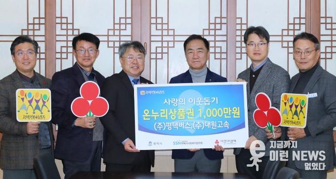 이런뉴스(e-runnews) 김삼성 기자 | ㈜평택버스는 지난 2일 관내 취약계층이 풍족한 설 명절을 보낼 수 있도록 온누리상품권 1천만 원을 평택시청 대외협력실에서 평택행복나눔본부로 전달했다.