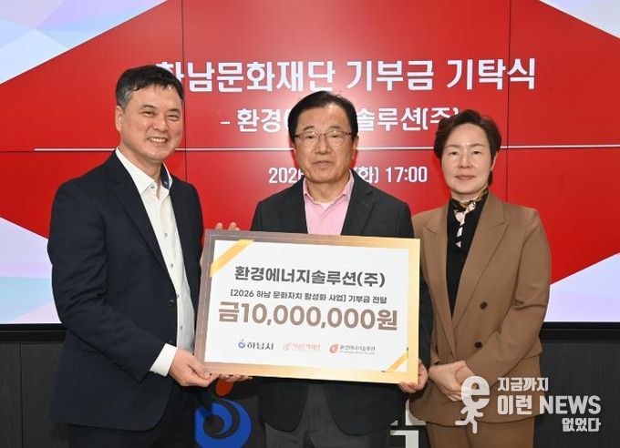 이런뉴스(e-runnews) 김삼성 기자 | (재)하남문화재단은 2월 4일, 하남시청에서 환경에너지솔루션㈜으로부터 문화자치 활성화를 위한 기부금 1천만 원을 전달받았다고 밝혔다. 이날 기부식에는 이현재 하남시장을 비롯해 기업 및 재단 관계자들이 참석해 지역 상생과 ESG 실천의 의미를 공유했다.