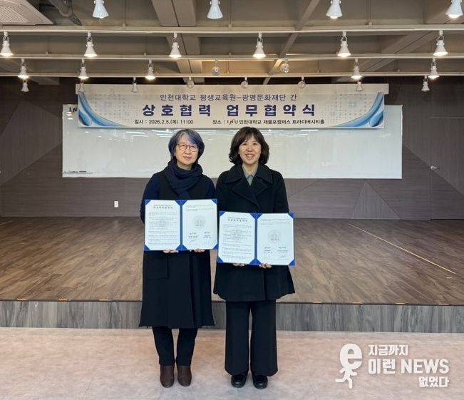 이런뉴스(e-runnews) 김삼성 기자 | (재)광명문화재단은 인천대학교 평생교육원과 함께 2월 5일 오전 11시에 인천대학교 평생교육원에서 '무대예술 전문인력양성 및 공연예술 분야의 공동 발전을 위한 업무협약'을 체결했다고 밝혔다.
