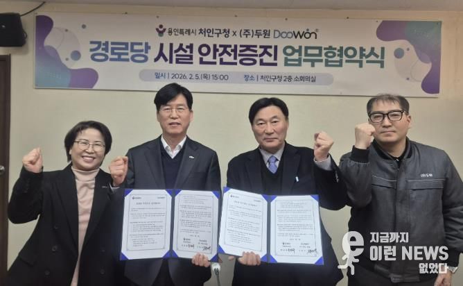 이런뉴스(e-runnews) 김삼성 기자 | 용인특례시 처인구는 5일 처인구청 2층 소회의실에서 지역내 전기부품 생산 전문기업 ㈜두원과 ‘경로당 시설 안전증진 업무협약’을 체결했다.