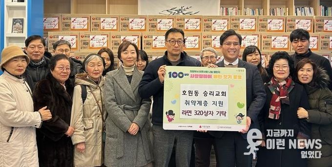 정화자 동장은 “매년 나눔을 실천해 주시는 승리교회에 깊은 감사를 드린다”며 “기탁해 주신 라면은 도움이 필요한 이웃들에게 정성껏 전달해 따뜻한 설 명절을 보낼 수 있도록 하겠다”고 말했다.