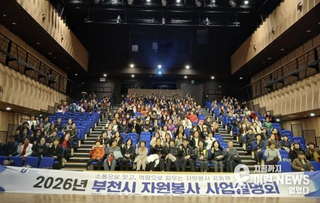 이런뉴스(e-runnews) 김삼성 기자 | 부천시는 지난 5일 부천아트센터 소공연장에서 자원봉사 단체 임원과 봉사자 200여 명이 참석한 가운데 ‘2026년 자원봉사 사업설명회’를 열었다. 이번 설명회는 올해 자원봉사 운영 방향을 공유하고, 현장의 의견을 청취해 시민 중심의 봉사 문화를 확산하기 위해 마련됐다.