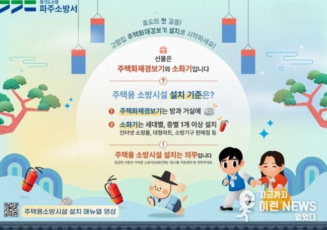 김명찬 파주소방서장은 “화재는 초기 몇 분이 가장 중요하다”며 “각 가정과 영업장에서는 소화기를 눈에 잘 띄는 곳에 비치하고, 평소 사용 방법을 익혀 두길 바란다”고 말했다.