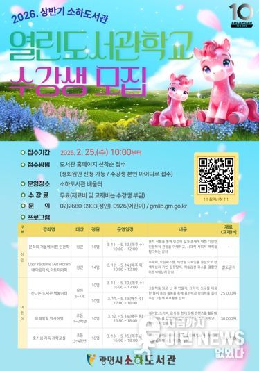 이런뉴스(e-runnews) 김삼성 기자 | 광명시 소하도서관이 ‘2026년 상반기 열린도서관학교’ 수강생을 모집한다.