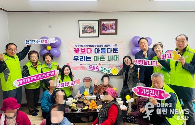 이런뉴스(e-runnews) 김삼성 기자 | 양주시 양주1동은 지역사회보장협의체가 최근 정서적 고립감을 느끼는 산북4통 90세 이상 어르신들을 대상으로 경로당에서 '꽃보다 아름다운 우리는 아흔 세대' 사업을 추진했다고 밝혔다.