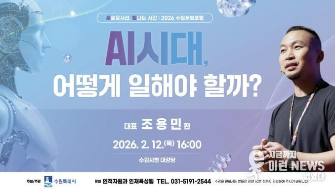 이런뉴스(e-runnews) 김삼성 기자 | ‘새로운 시선, 빛나는 시간’ 제176회 수원새빛포럼이 2월 12일 오후 4시 수원시청 대강당에서 열린다. 조용민 언바운드랩데브 대표가 강연자로 나선다.