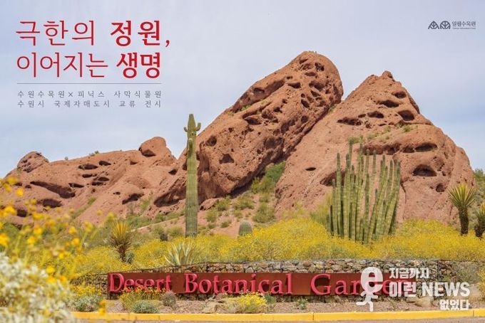이런뉴스(e-runnews) 김삼성 기자 | 수원수목원은 3월 22일까지 일월수목원 방문자센터 1층에서 수원시 국제자매도시인 피닉스시의 피닉스 사막식물원을 소개하는 사진전 ‘극한의 정원, 이어지는 생명(미국 피닉스 사막식물원 사진전)’을 연다.