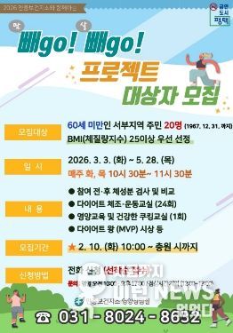 이런뉴스(e-runnews) 김삼성 기자 | 평택시 안중보건지소는 지역 주민의 건강한 체중 관리와 비만 예방을 위해 상반기 ‘빼go! 빼go! 프로젝트’ 프로그램을 운영하고, 참여자를 모집한다고 밝혔다.