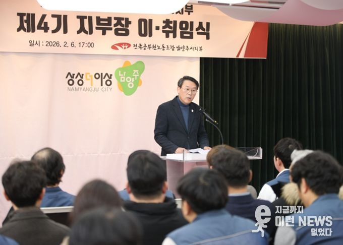 이런뉴스(e-runnews) 김삼성 기자 | 남양주시는 6일 시청 여유당에서 전국공무원노동조합 남양주시지부가 제4기 지부장 이·취임식을 열었다고 9일 밝혔다.