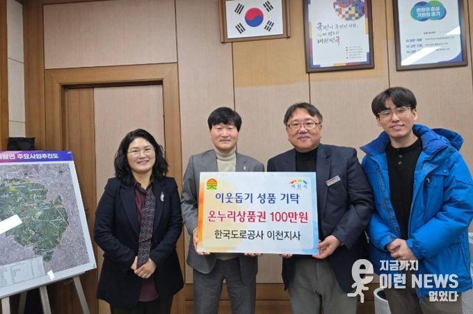 이런뉴스(e-runnews) 김삼성 기자 | 한국도로공사 이천지사는 10일 설 명절을 앞두고 관내 취약가구 지원을 위해 100만 원 상당의 온누리상품권을 이천시 대월면 행정복지센터에 기탁했다.