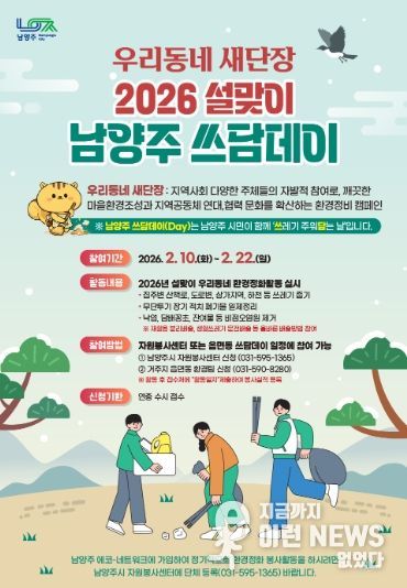 이런뉴스(e-runnews) 김삼성 기자 | 남양주시는 10일부터 22일까지 시 전역에서 ‘설맞이 우리동네 새단장 남양주 쓰담데이 집중 추진기간’을 운영한다고 밝혔다.