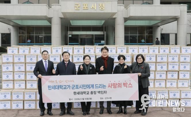 이런뉴스(e-runnews) 김삼성 기자 | 유난히 추운 겨울이지만, 군포시에는 이웃을 향한 정성이 모여 훈훈한 설 명절 분위기가 피어나고 있다. 한세대학교는 10일, 지역 내 취약계층의 넉넉한 명절을 위해 ‘사랑의 희망박스’ 350세트를 군포시에 전달하며 상생의 가치를 실천했다.