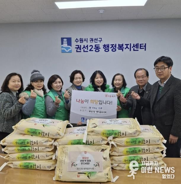유민숙 권선2동 새마을부녀회 회장은 “설 명절을 맞아 회원들이 따뜻한 마음으로 준비한 쌀 기부를 통해, 생활에 어려움을 겪는 이웃들에게 조금이나마 힘이 됐길 바란다”며 “앞으로도 이웃과 함께하는 나눔과 봉사를 꾸준히 이어가겠다”라고 소감을 전했다.
