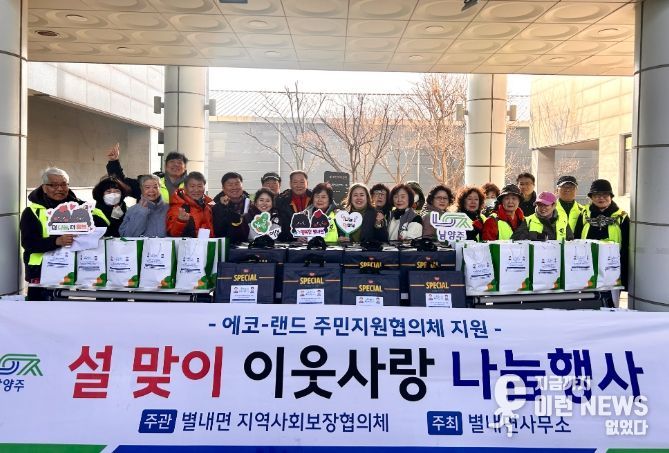 전달된 명절 꾸러미는 △에코-랜드 주변지역 주민지원협의체 주민지원사업 기금으로 마련한 명절 식품세트 △별내면 이장협의회가 후원한 떡국 떡 2kg △개인 후원자 고근형·이수옥 님이 기부한 사골곰탕 1.5kg 등으로 구성됐다. 이번 나눔은 지역사회 각계의 정성을 모아 준비해 더욱 뜻깊다.