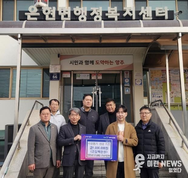 이런뉴스(e-runnews) 김삼성 기자 | 양주시 은현면은 지난 12일 양주로터리클럽 은남석찬회가 은현면행정복지센터를 방문해 관내 소외된 이웃을 위해 사용해 달라며 성금 100만 원을 기부했다고 밝혔다.