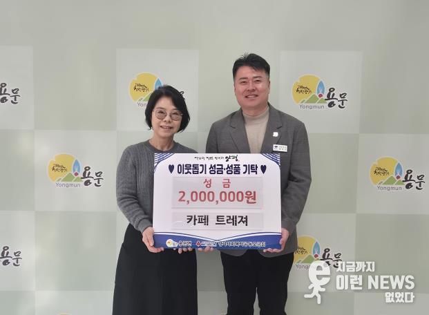 이런뉴스(e-runnews) 김삼성 기자 | 양평군 용문면은 지난 12일 관내 카페트레져가 어려운 이웃을 위해 사용해 달라며 성금 200만 원과 함께 명절을 외롭게 보내는 어르신들을 위한 유과와 약과 각 2박스씩, 총 4박스를 기탁했다고 밝혔다.