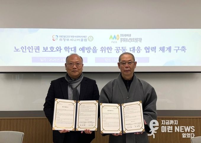 이런뉴스(e-runnews) 김삼성 기자 | 경기북부노인보호전문기관은 2월 13일 의정부시니어클럽과 노인 권익 증진 및 지역 복지 강화를 위한 업무협약을 체결했다고 밝혔다.