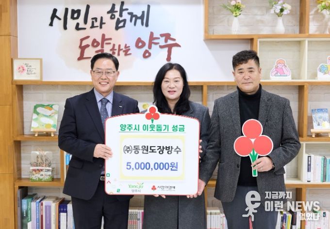 이런뉴스(e-runnews) 김삼성 기자 | 양주시는 지난 12일 ㈜동원도장방수로부터 이웃돕기 성금 500만 원을 기탁받았다고 밝혔다.