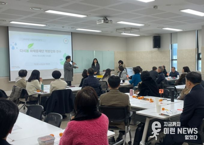 이런뉴스(e-runnews) 김삼성 기자 | 경기도수원교육지원청은 2월 12일부터 2월 13일까지 이틀간 YBM연수원에서 수원 다시봄 화해중재단 역량강화 연수를 15시간 진행했다.