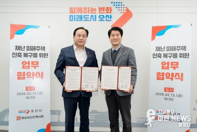 이권재 오산시장은 “재난 피해 주민의 조속한 일상 회복을 위해 주거 안정이 무엇보다 중요하다”며 “이번 협약을 통해 피해주택 복구가 원활히 이뤄질 수 있도록 행정적 지원에 힘쓰겠다”고 말했다.
