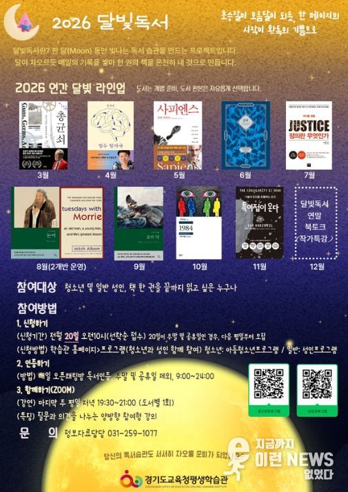 이런뉴스(e-runnews) 김삼성 기자 | 경기도교육청평생학습관(관장 류영신)이 청소년과 성인이 함께 참여하는 독서 프로그램 ‘달빛독서’를 운영한다.