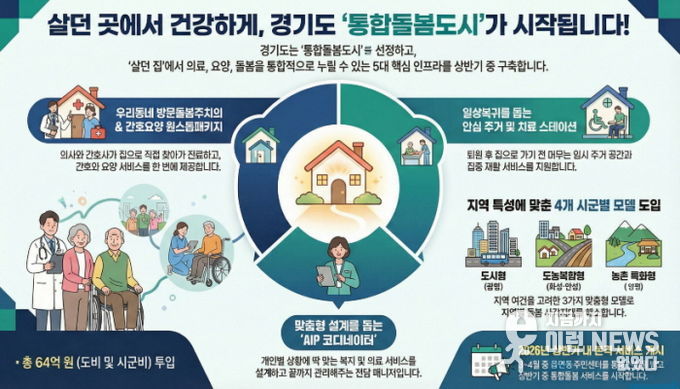 이번 사업은 오는 3월 ‘의료·요양 등 지역 돌봄의 통합지원에 관한 법률’ 시행에 앞서 각 지역의 인구 구조와 특성에 맞춘 ‘경기형 통합돌봄 모델’을 구축하려는 선제적 조치다. 경기도는 도비와 시군비 총 64억 원의 예산을 투입할 예정이다. 국정 제1 동반자로서 경기도가 통합돌봄 정책 기조를 가장 앞장서서 실천함으로써 경기도의 실행 리더십을 증명하는 의지를 담고 있다.