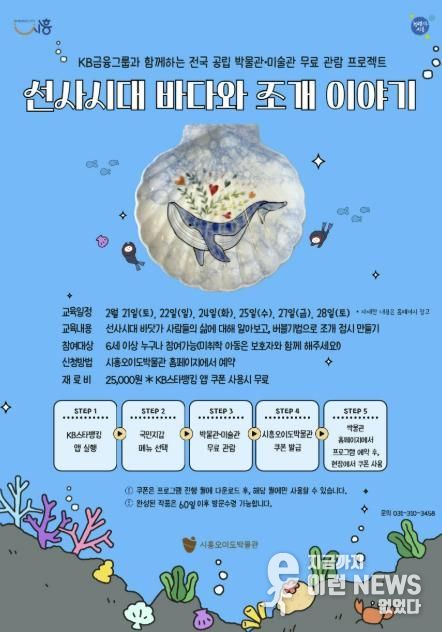 이런뉴스(e-runnews) 김삼성 기자 | 시흥시는 겨울방학을 맞아 KB금융그룹의 ‘전국 공립 박물관ㆍ미술관 무료 관람 프로젝트’와 연계한 시민 참여형 교육ㆍ체험프로그램 ‘선사시대 바다와 조개 이야기’를 시흥오이도박물관에서 운영한다.