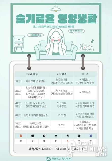 이런뉴스(e-runnews) 김삼성 기자 | 수원시 팔달구보건소가 1인 가구와 건강 취약계층을 대상으로 영양 관리 프로그램 ‘나를 위한 한 끼, 슬기로운 영양생활’을 운영한다.