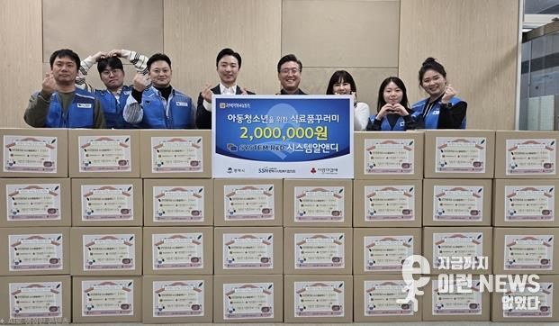 이런뉴스(e-runnews) 김삼성 기자 | 시스템알앤디는 지난 11일 설 명절을 맞아 취약계층 아동·청소년들을 위해 200만 원의 식료품 꾸러미를 제작하여 평택행복나눔본부에 전달했다.