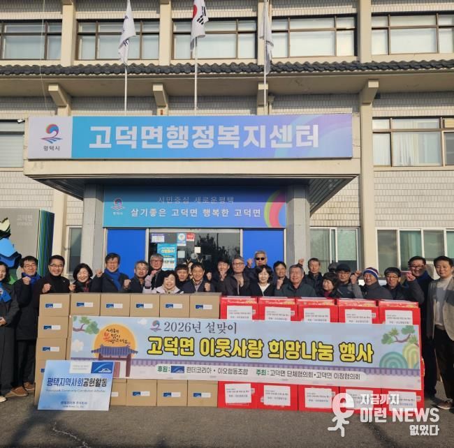 윤을숙 고덕면장은 “지역 기업과 단체가 함께 협력해 이웃사랑을 실천하신 데 깊이 감사드린다”며 “행정에서도 민간 자원과 연계해 위기가구 지원과 복지 안전망 강화에 더욱 힘쓰겠다”라고 밝혔다.