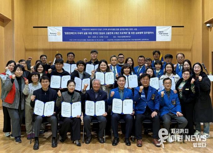 이런뉴스(e-runnews) 김삼성 기자 | 사회복지법인 한길복지재단은 지난 2월 12일 동안성로타리클럽 주관으로 안성 1·2지역 10개 로타리클럽과 안성시 중증장애인의 문화예술 참여 확대 및 직업적 자립 지원을 위한 업무협약(MOU)을 체결했다.