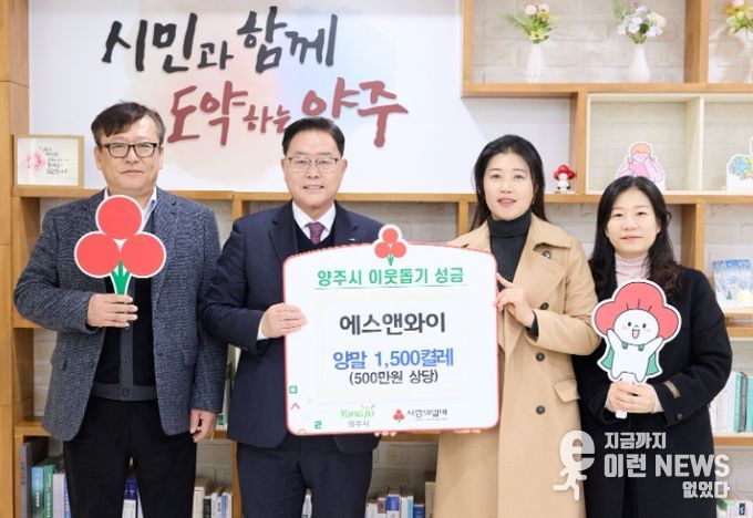 이런뉴스(e-runnews) 김삼성 기자 | 양주시는 19일 백석읍 소재 에스앤와이가 지역 내 어려운 이웃을 위해 양말 1,500켤레(500만 원 상당)를 기부했다고 밝혔다.