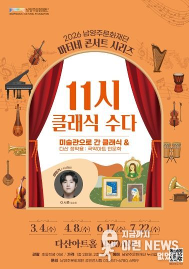 한편, 2026 남양주문화재단 마티네 콘서트는 초등학생 이상 관람 가능하며, 공연별 티켓 오픈 일정 및 자세한 내용은 남양주문화재단과 남양주시 누리집을 통해 확인할 수 있다.