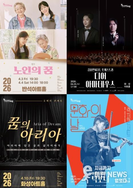 이런뉴스(e-runnews) 김삼성 기자 | 화성시문화관광재단은 오는 4월, 다채로운 장르의 기획 공연을 선보인다. 삶을 이야기하는 연극부터 세계적인 클래식 스타의 무대, 스토리텔링 형식 오페라 콘서트, 유튜브에서 만나던 탁보늬의 렉처 콘서트까지. 세대를 아우르는 프로그램을 통해 시민 누구나 자신의 취향에 맞는 공연을 선택할 수 있도록 기획했다.