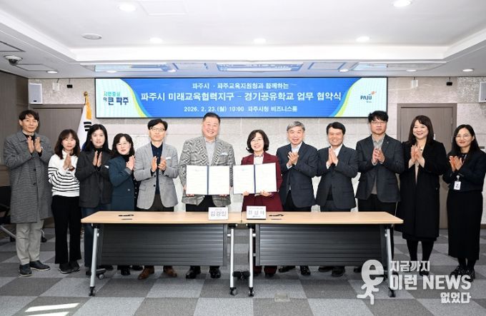 이런뉴스(e-runnews) 김삼성 기자 | 경기도파주교육지원청은 2026년 2월 23일에 파주시와 ‘파주시 미래교육협력지구–경기공유학교’ 업무협약을 체결했다.