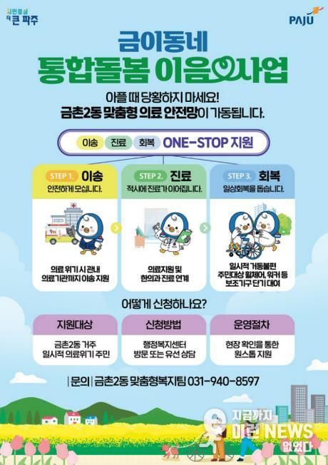 이런뉴스(e-runnews) 김삼성 기자 | 파주시 금촌2동은 의료·돌봄 공백을 줄이기 위한 ‘통합돌봄 이음 서비스’를 3월부터 본격 가동한다. 긴급 상황에서 병원까지 가지 못해 치료 시기를 놓치거나, 진료 이후 회복 단계에서 돌봄이 끊기는 문제를 줄이겠다는 취지다.